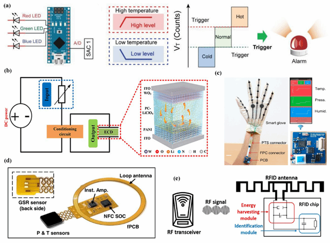 通过医疗健康监测、工业设备防护、智慧农业管理等案例,验证系统在效率提升、成本降低及生态保护方面的价值。首先,在人体热管理领域,这些系统可以应用于电子皮肤等可穿戴设备,实现实时温度监测,早期发现健康问题。此外,用于术后康复的智能轮椅和假肢从智能热管理中获益良多。这些应用不仅改善了患者的舒适度,而且提高了医疗和康复过程的有效性。其次,在设备热管理领域,灵活的智能热管理系统有助于防止电池过热和潜在危害; 从而确保工业和消费电子产品的安全高效运行。它们还提高了人机交互的效率、安全性和用户体验。第三,在环境热管理领域,这些系统可以监测环境温度,以确保安全并协助农业发展。在智能家居中,灵活的智能热管理系统可以提高能源效率,保持舒适的生活条件。